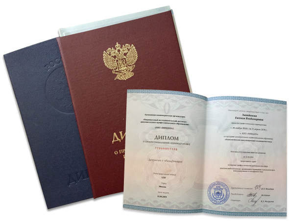 Диплом дополнительного образования по специальности «Психология и психодиагностика» факультета психологии (АНО НИИ ДПО)